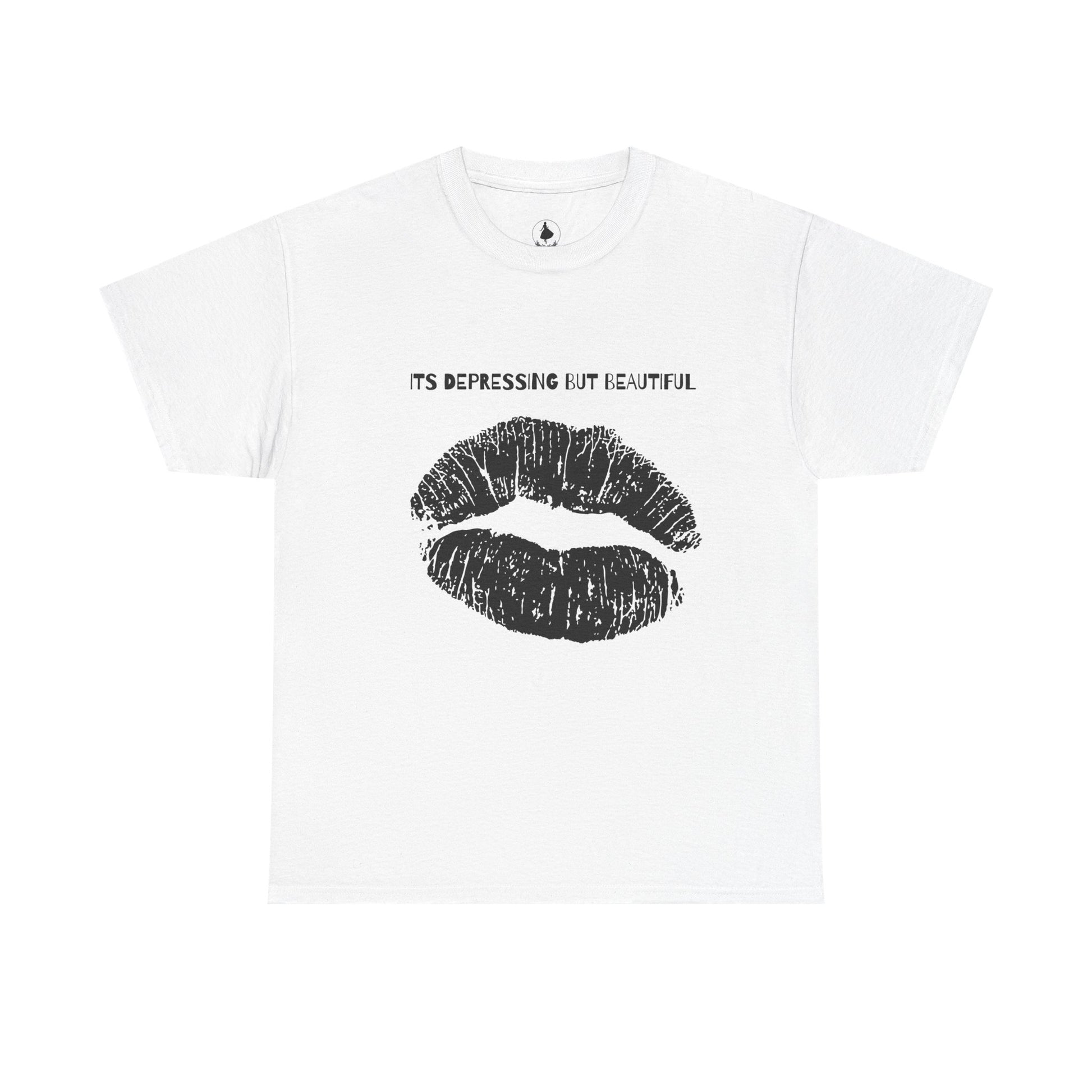 Unisex Heavy Cotton Tee - 'It's Depressing But Beautiful' Graphic Tee, Casual Wear, Gift for Friends, Self-Care Apparel, Trendy Tee